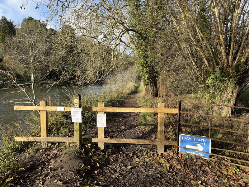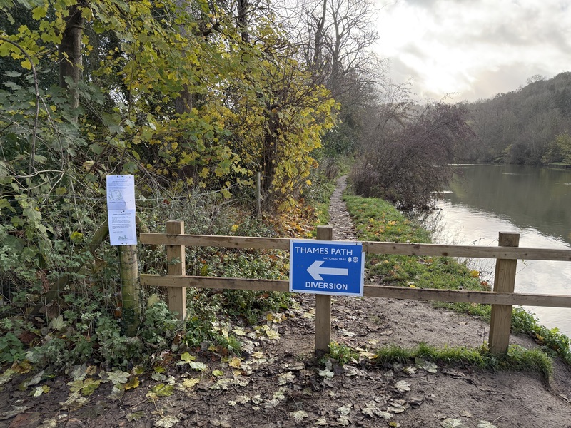 Shortly before Goring & Streatley Bridge there is a half mile (0.8km) diversion away from the Thames due to an eroding towpath.